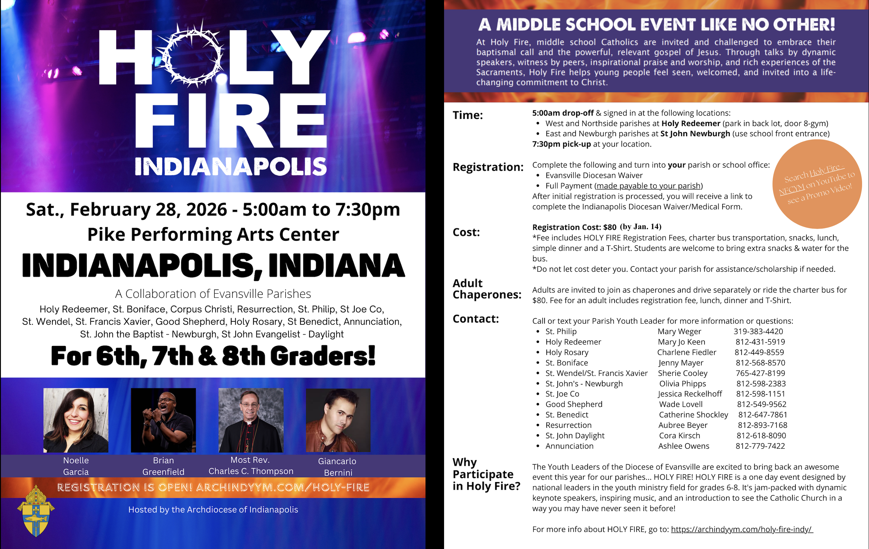 The group typically meets two Sunday evenings each month. Below you will find important flyers and registration forms regarding youth ministry activities for the 2025-2026 school year!
